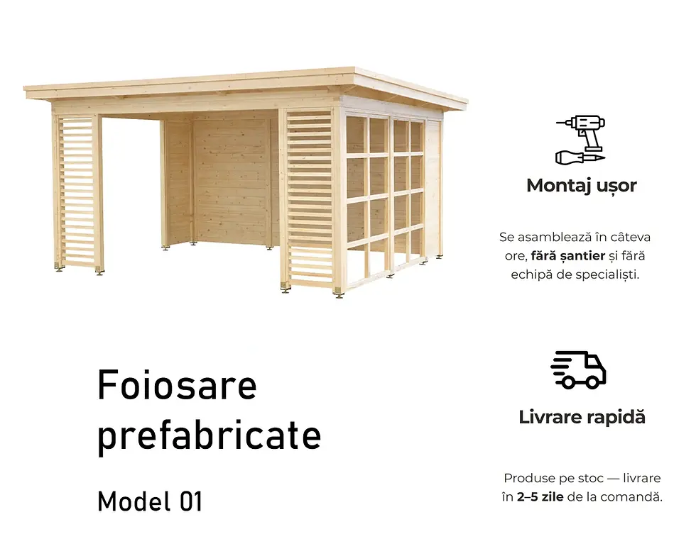 Un foișor prefabricat din lemn sau o terasă din lemn modulară poate fi configurată ca spațiu deschis, semi-închis sau protejat, în funcție de utilizare. În plus, structura poate fi extinsă sau modificată în timp, fără intervenții complexe.