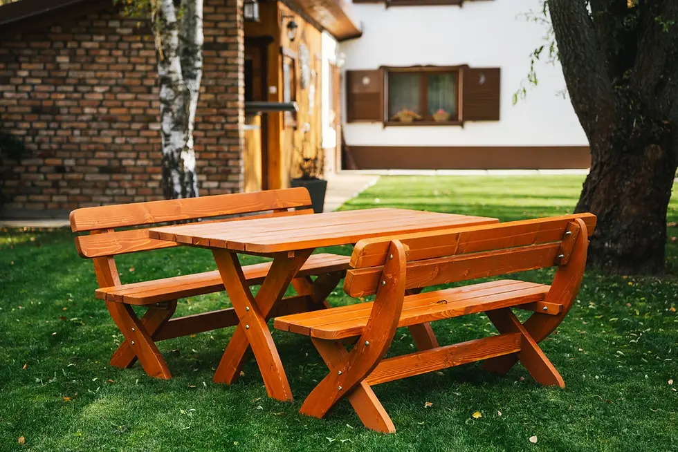 Mese, bănci și scaune de grădină din lemn masiv pentru exterior, concepute pentru rezistență, stabilitate și utilizare îndelungată în spații outdoor. Fiecare piesă este realizată din lemn masiv atent selecționat, potrivit pentru terase, curți, foișoare sau zone de relaxare în aer liber.